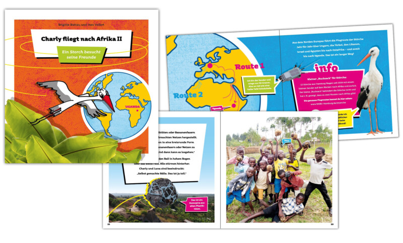 Charly fliegt wieder! Wisst ihr noch, als Charly in Uganda Favour, Amon und die anderen Kinder traf? Charly hatte auf seinem Weg nach Afrika seinen Schwarm verloren und landete erschöpft auf dem Dach einer Strohhütte. Die Kinder aus Uganda waren für Charly da. Gemeinsam verbrachten sie einen erlebnisreichen Tag. Nun macht sich Charly Storch erneut auf den Weg, um Favour, Amon und all die anderen Kinder wiederzusehen. Luna Langbein begleitet Charly auf seiner Reise. Gemeinsam treffen sie neue Freunde, erfahren, wie man Fußball und Springseil selber bastelt, und lernen Ugandas Tierwelt kennen.