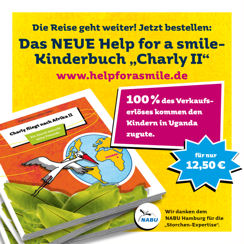 Wir danken allen Unterstützern und insbesondere den Sponsoren des Buchdrucks sowie Dr. Christian Gerbich vom NABU, Landesverband Hamburg e.V., für die ausgesprochen großartige Storchen-Expertise! Ein Buch kostet 12,50 €. Bei Versand kommen Porto und Verpackung dazu (1 bis 2 Bücher = 4,00 €, 3 bis 4 Bücher = 6,50 €). Bestellen könnte ihr das Buch über info@helpforasmile.de – oder fragt uns (Anette, Bettina, Brigitte, Ines, Ralf, Thomas) persönlich!