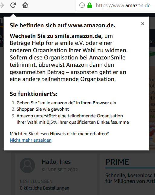 Anbei die Infos für Amazon smile: