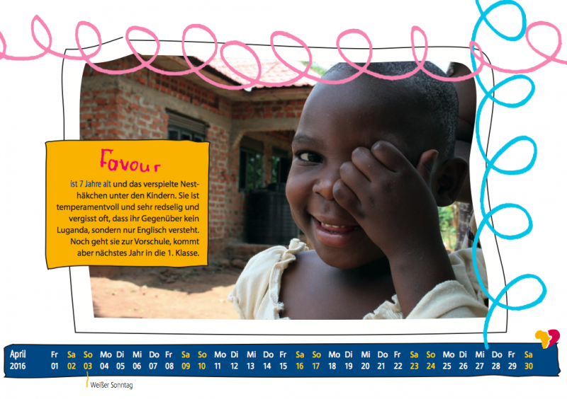 Der Kalender ist ein wundervolles kleines Weihnachts- oder Nikolausgeschenk für Eure Lieben (oder auch für euch :)) und gleichzeitig ein „Geschenk“ für unsere Kids in UGANDA, da der Erlös direkt den Kindern zugute kommt.